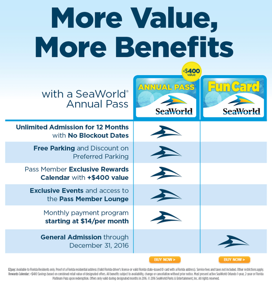 Yes time is running out here is your last chance to save on admission to Seaworld and pay for less than a day and play all year FREE! Purchase your 2016 Fun Card now and enjoy unlimited general admission with no blockout dates through December 31, 2016. Fun Card includes admission to SeaWorld Orlando’s incredible line-up, but, must be redeemed in-park by March 6, 2016.