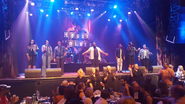 I recently attended the World Famous Gospel Brunch with my Mom, a friend of hers, my fiance and the show was exhilarating. My spirit was full, the choir performed some of my gospel favorites. I spent a lot of time singing and dancing. The House of Blues staff did a wonderful job interacting with the audience during the performances by getting folks up out of there seats and kicking off a dance train around the room. The buffet was really good there were so many food items to pick from. The orange juice was so refreshing, I requested a second pitcher for our table.