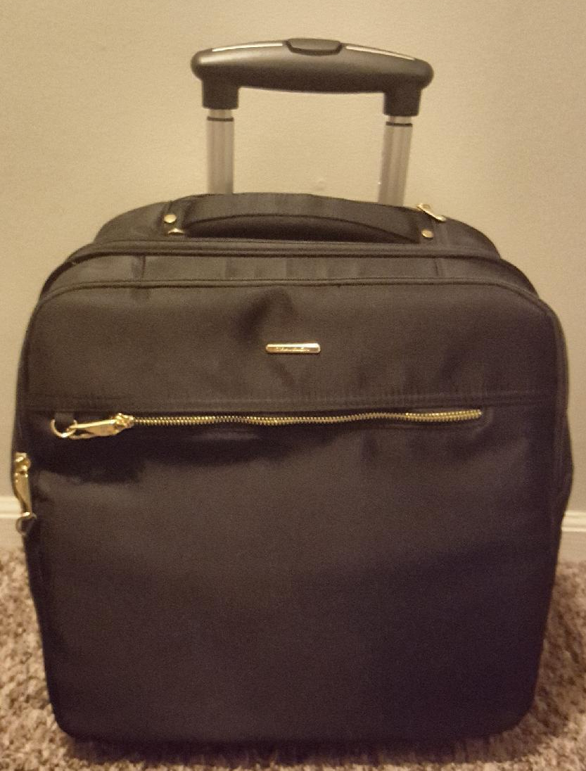 For business trips, I’m not a fan of carrying a backpack or multiple bags for my tech items and clothing due to a back injury. I love skipping pass the bag check line and prefer to go straight to TSA. Recently I forgot one of my best in the overhead carriage and I had to pay for the case to be mailed to me. I decided it was time to find a case I could slide up under the seat in front of me, pack all of my accessories and clothing while providing me with me with a piece of mind. The Travelon Anti-Theft Tailored Wheeled Underseat Carry-On is a must have luggage case.