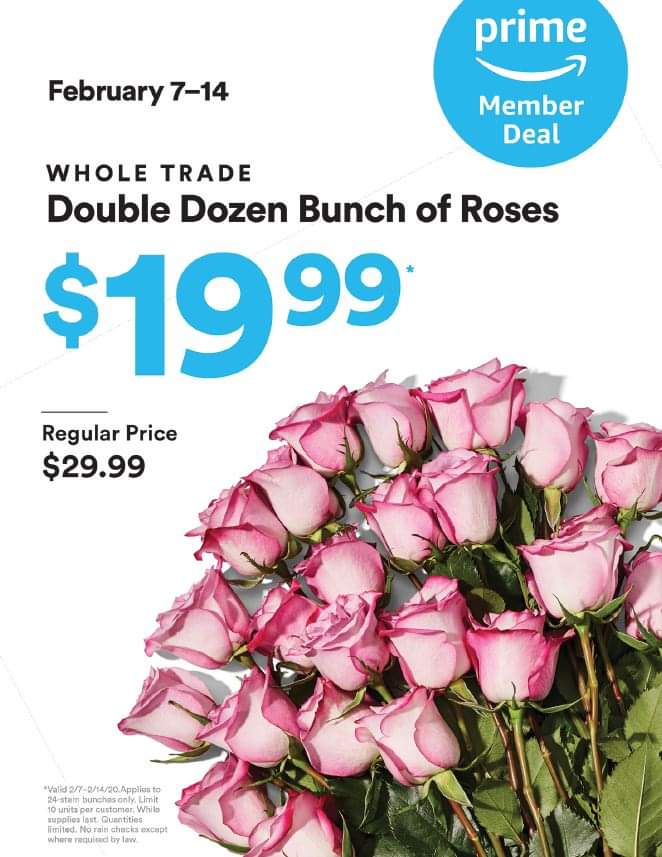 Valentine’s Day is this Friday, but if you’re planning to celebrate early now through February 14th, Amazon Prime Members can snag Two Dozen Roses from Whole Foods for $19.99. Usually one dozen can be a little pricey this time a year. Looking to purchase one no upcharge only $9.99 per dozen! Simply log-in to the Amazon or Whole Foods app and scan the bar code at checkout.