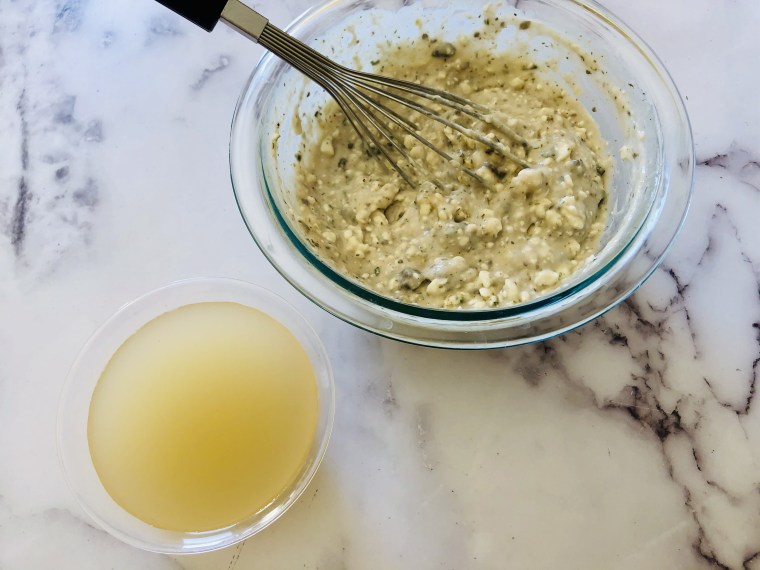 Whisk together the soup, cream cheese, and seasoning