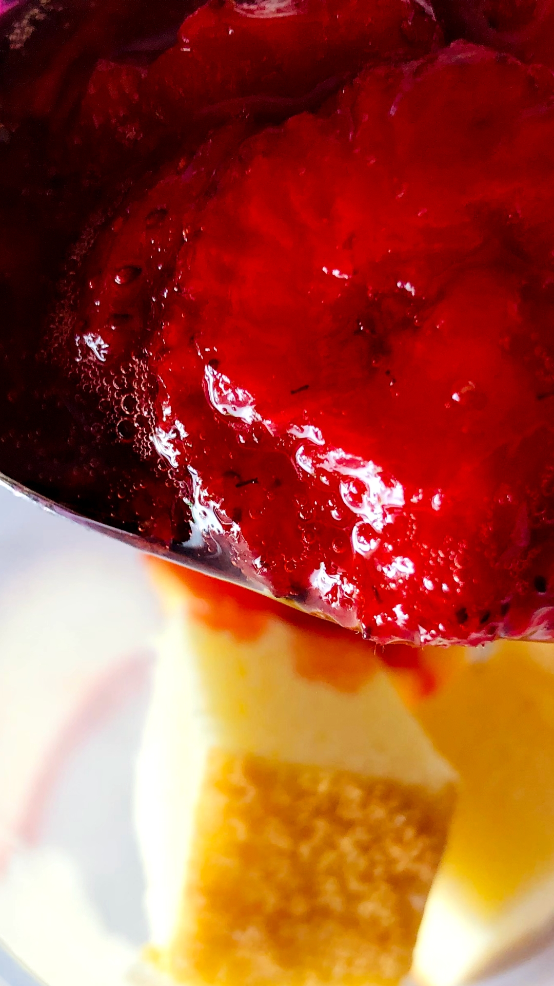 Spoon strawberries over the cake