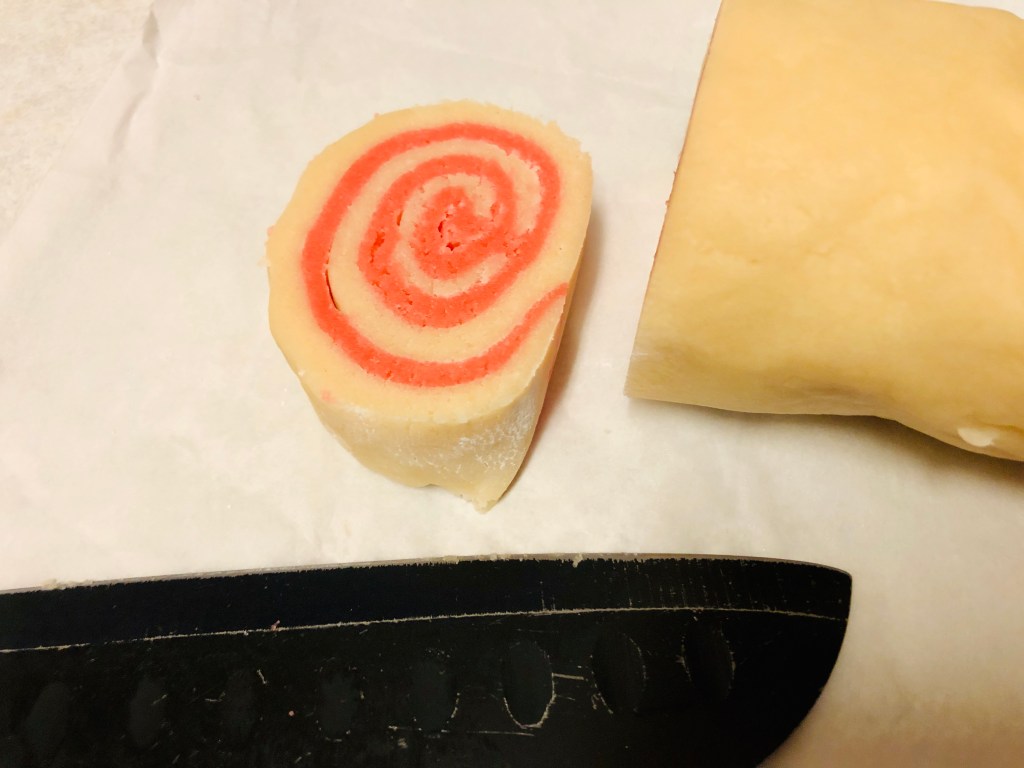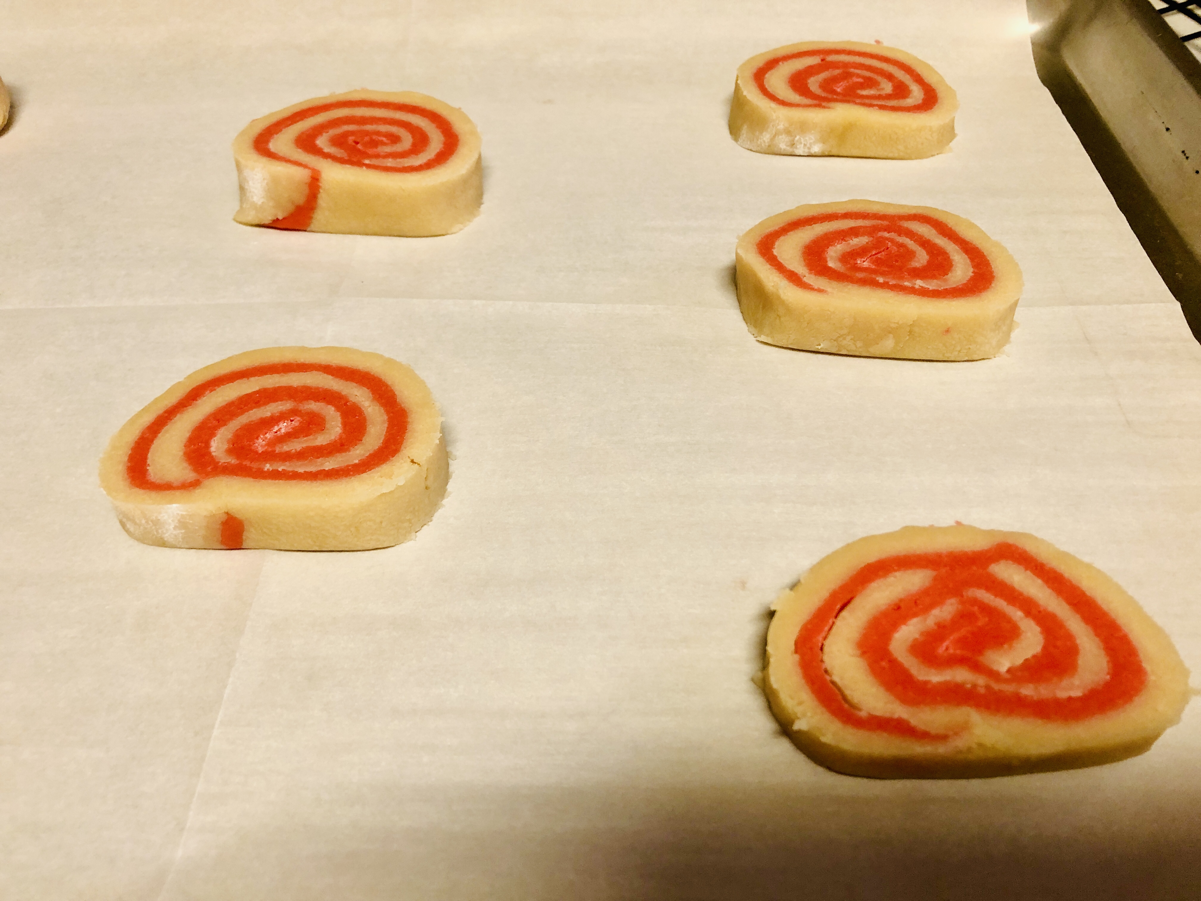 Slice the cookies and bake on a parchment paper lined baking sheet at 375 for 8-10 minutes