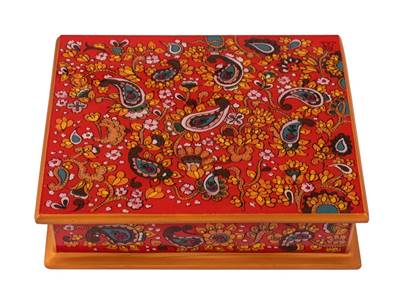 Hand Crafted Peruvian Wood Jewelry Box ‘Passion’ – Felicita Espinoza showcases her artistic passion for reverse-painted glass in this brilliantly patterned fiery red jewelry box. A self-taught painter, whose delicate brushwork displays the refined painterly techniques that characterize this centuries-old Peruvian art form, today supports her family through the sales of her highly collectible jewelry boxes and other decorative accessories.