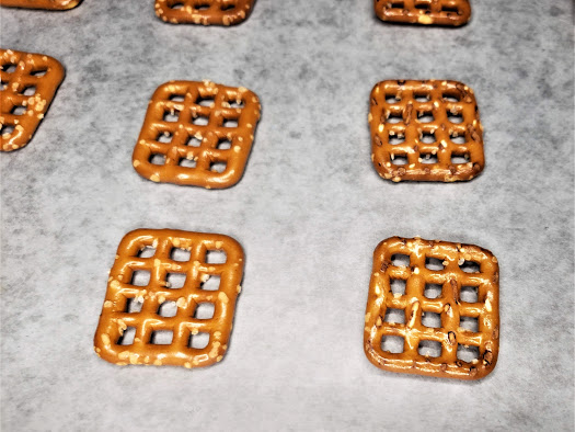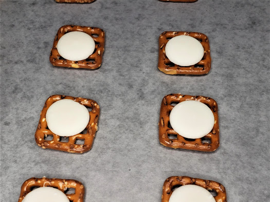 Place into the oven for about 2-3 minutes or until the candy melt starts to slightly melt