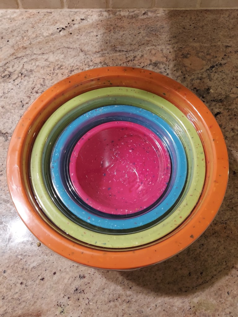 I am so excited these bowls are multipurpose. When my nephews we use the for snacks or baking activities.These melamine bowls are suited for any number of uses, such as prepping, mixing, stirring, and baking like a pro. When you’re done, the bowls clean easily in. The Confetti line makes a vibrant 1980’s statement with an unmistakably eclectic feel. The Confetti 4-piece bowl set is perfect for both everyday use and special occasions! For easy storage nest the bowls together efficiently to help declutter kitchen cupboards.