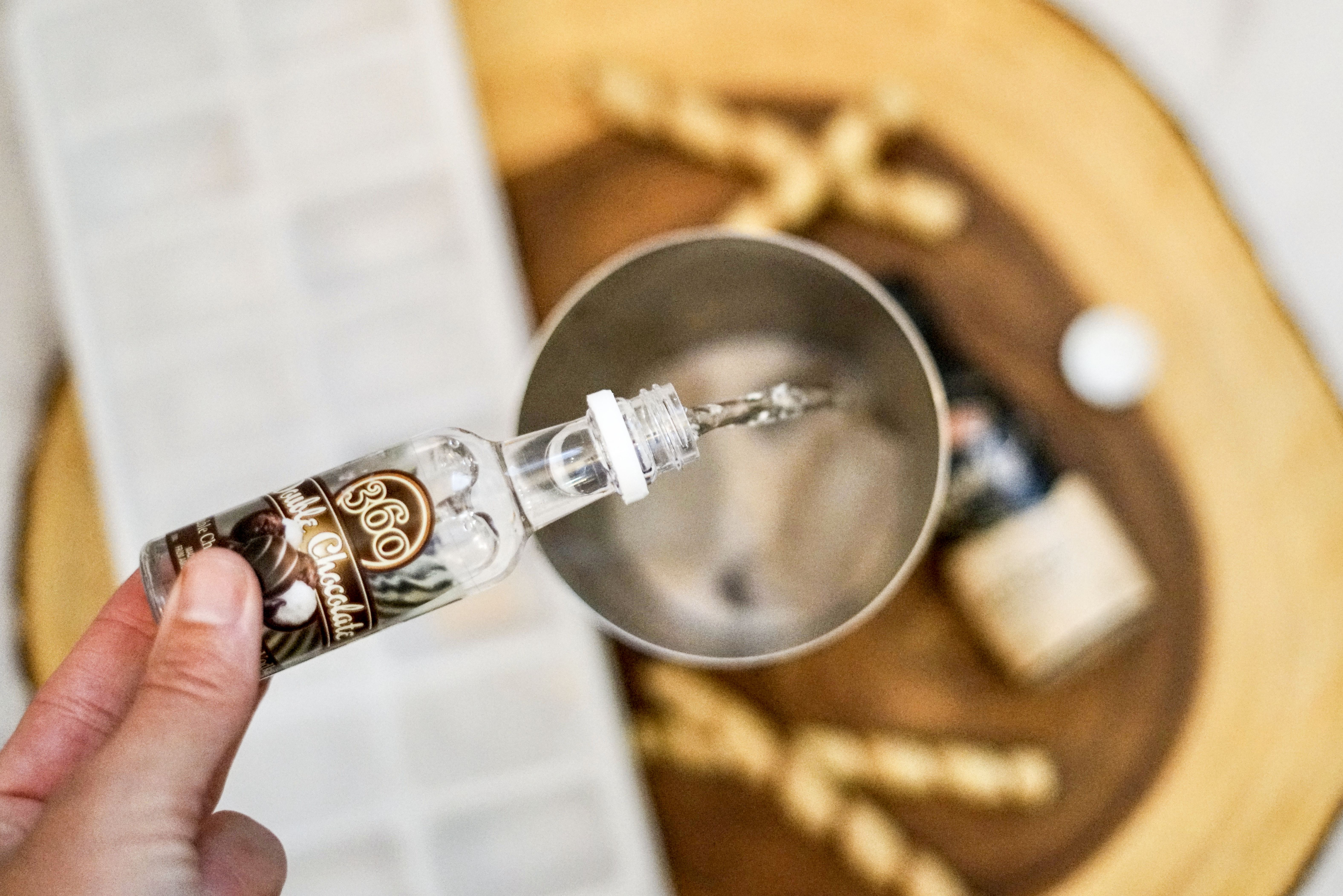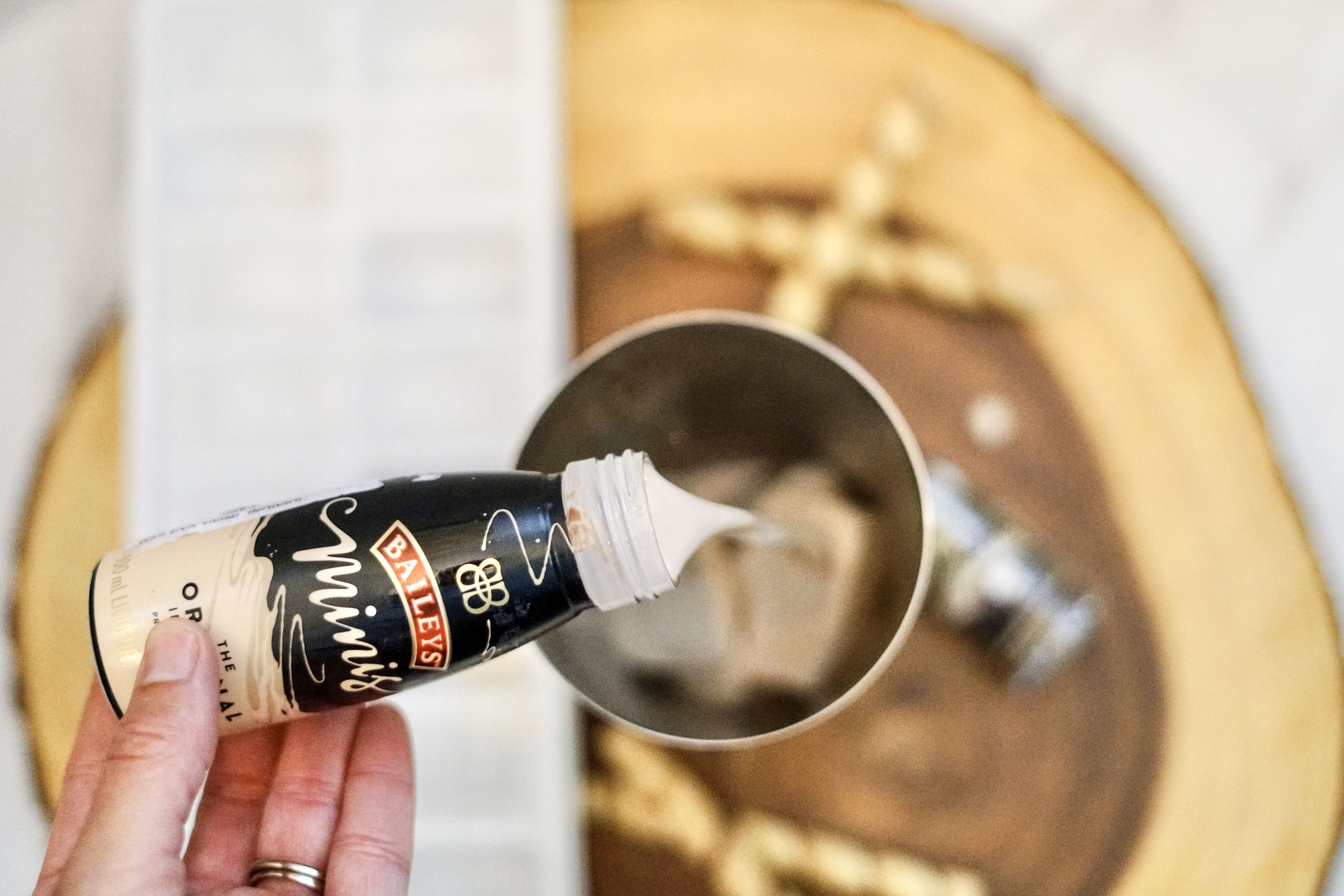 - Pour in the Irish cream & chocolate vodka.